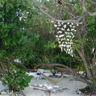 На всем острове Гурайдо запрещено загорать в бикини. Но рядом есть отдельный остров, отданный только туристам. Это совсем крошечный островок, соединенный с жилым небольшим мостом. Здесь очень чисто и уютно, есть лежаки, гамаки, пальмы, и загорать можно как угодно, никому не мешая. Одна беда – нет туалета.