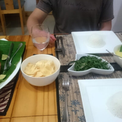 На ужин была свежая запеченная рыба, рис, карри, самодельные чипсы – очень вкусные.